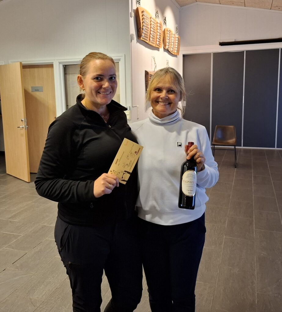 Etter runden ble det servert pizza og det var premieutdeling, både for dagens scramble og for Order Of Merit som har vært gjennom hele sesongen. Sesongens beste damespiller i klasse 1 har i år vært Wenche H. Vetås. (Var ikke tilstede i dag) På andreplass kom Vivian Kristiansen og på tredjeplass kom Berit Gillebo.
