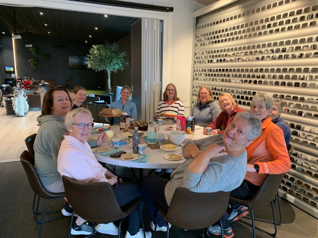 Etter at de første ni hullene var spilt, var alle spillerne fortsatt optimister, og det ble god tid til en felles lunsj med brødmat, godt pålegg, kaffe og kake.