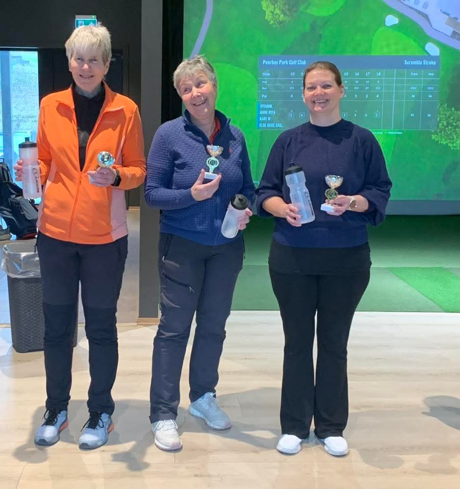 De siste ni hullene ble avslutta allerede før halv fire, og det var dermed klart for premieutdeling. Det laget som viste seg å mestre Penhros-banen aller best og som spilte på suverene -3, var laget til Tove, Britt og Tine Lise (sistnevnte debuterte også i sin første turnering i klubbsammenheng). Imponerende innsats, både av laget og av debutanten! Andreplassen gikk til laget bestående av Mona, Wenche, Astrid og Berit. Scoren deres endte på +1. Laget til Vivian, Kari, Anne Rita og Else Hege kom på tredjeplass med +2.